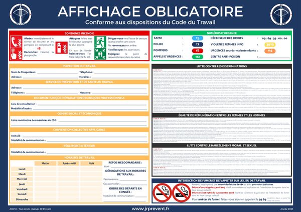 Fourniture par JR Prevent de l'affichage obligatoire pour votre organisme :